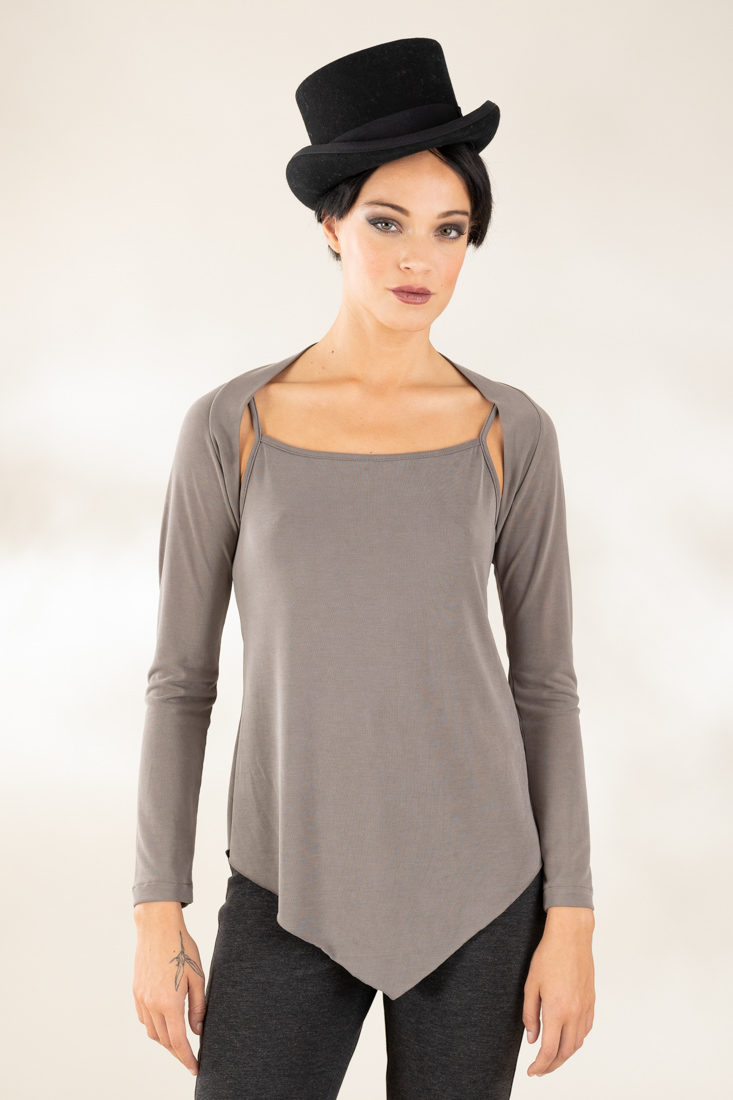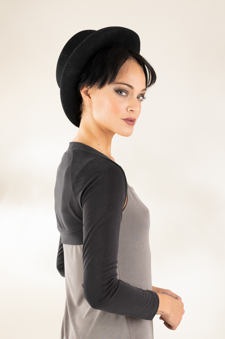Luftiger Stoff mit Velours-Optik, um die Arme bei jedem Modell abzudecken, wie ärmellose Kleider oder Trägertops. Insbesondere kombinierbar mit den Modellen aus luftigen Stoffen mit Velours-Optik, z. B. Hosenkleid und Trägertop.