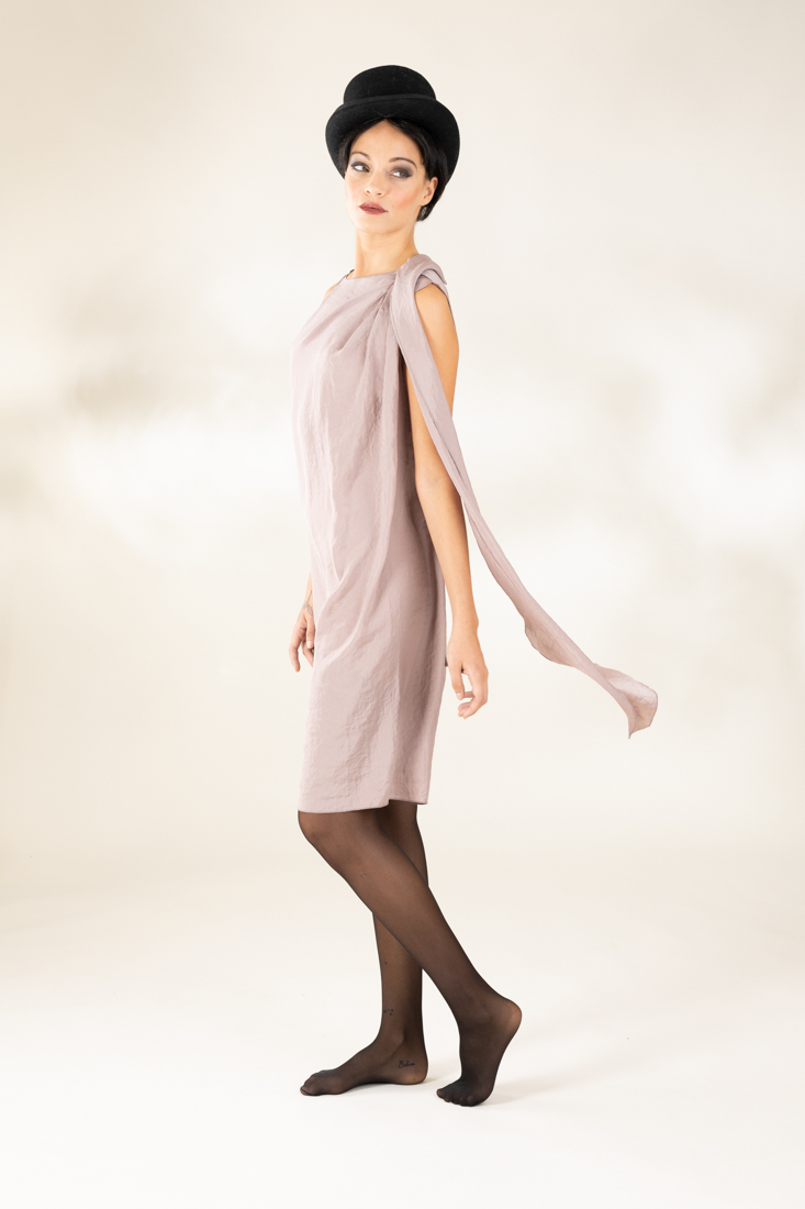 Draped with a versatile collar that lets you wear it long and loose or wrapped around the neck