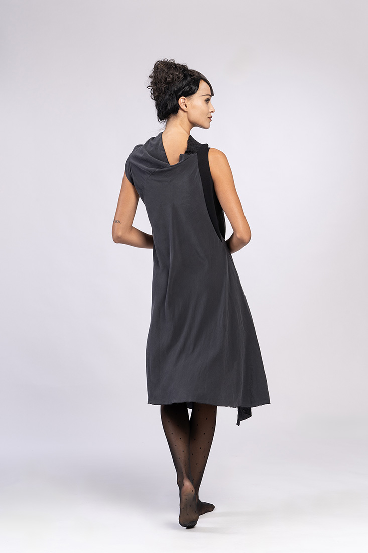 VESTIDO SEDA EXPERIMENTAL, FRUNCIDOS NATUTRALES POR TENSION TEJIDOS