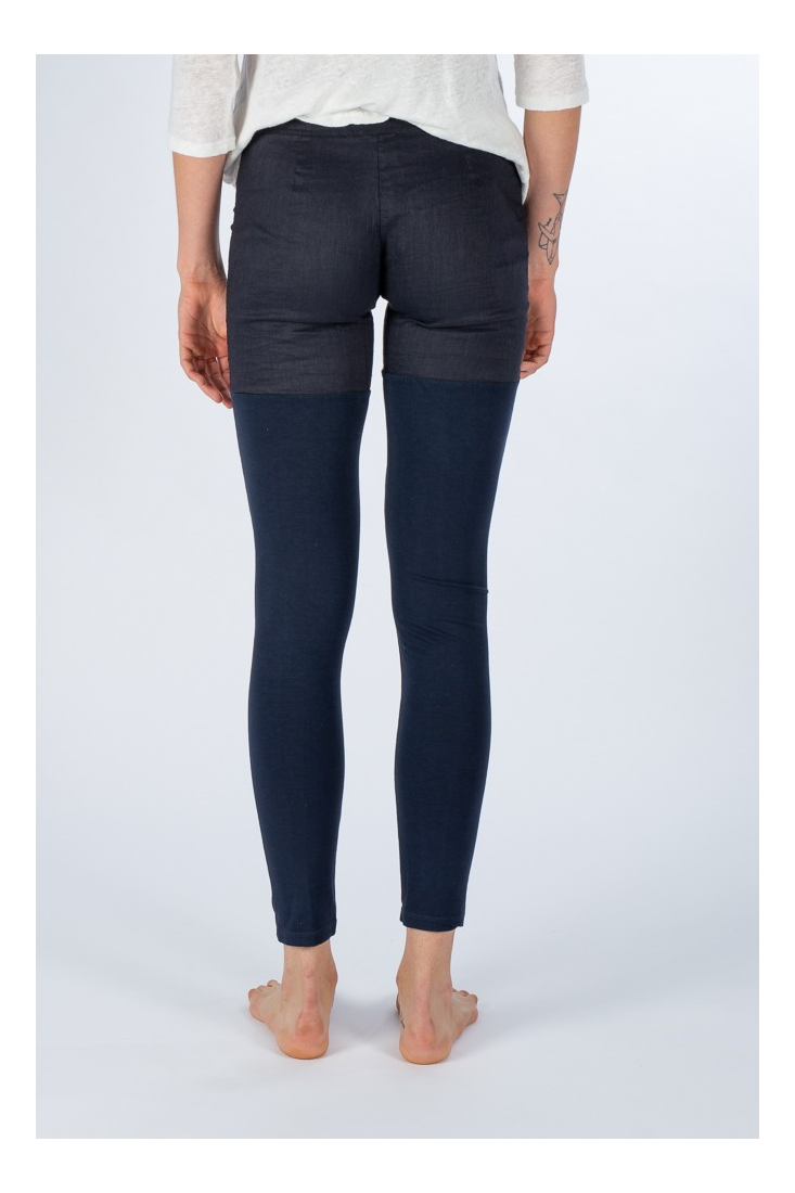 Corte ceñidoCostura a mitad de muslo y pliegue en el centro delanteAbrochado con botón y cremalleraAcabado elástico