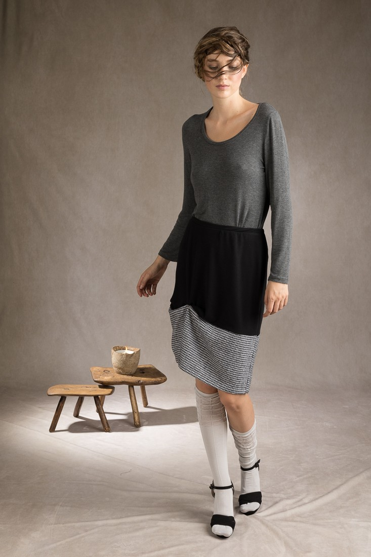 Corte justo encima rodillaBajo de tejido sin elasticidad, con detalle de plieguesCinturilla elástica con gomaPrenda confortable gracias al tejido elástico